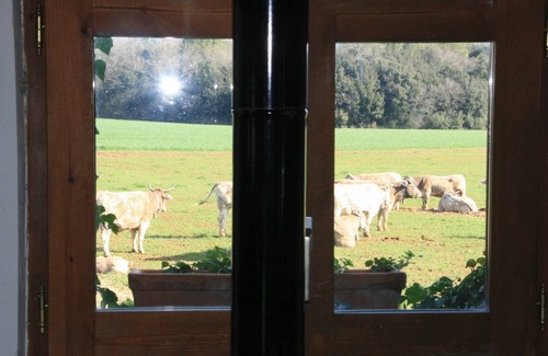 The surroundings are practically idyllic: woods, fields, views of the mountains, the river,...