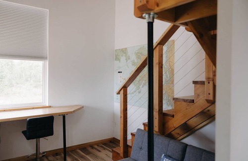 Come stay at the famous Pilot Lodge! Welcome to the Wrangell Tiny House, where woodlands and aviation meet at your doorstep. The property is located just ten minutes from Big Lake, AK. Come enjoy the Alaskan sunsets from your private balcony deck connected to the 1-bedroom loft. Your cabin is complete with a full kitchen and bathroom.
