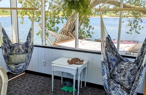 This tiny house is big time relaxing. It's nestled between two lakes just south of the Platte River. There's an additional outdoor area with a screened in sunroom. Kickback in a hammock and enjoy the view!