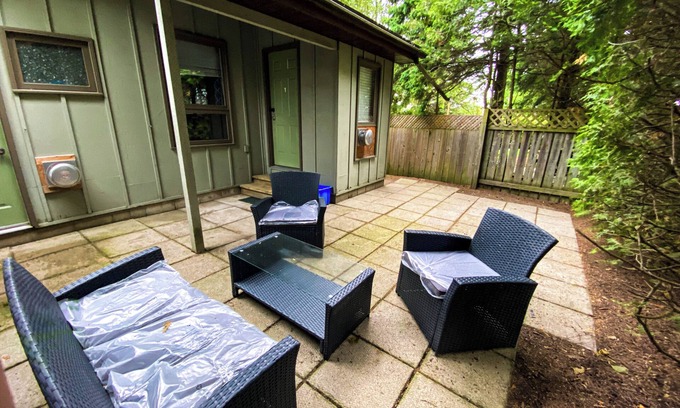 Each cottage features a private patio, kitchen, dining area, a queen bed, a La-Z-Boy pullout couch, BBQ, free WiFi, and parking for one vehicle. Please note that due to the cottage size, a maximum of four people is allowed per cottage.