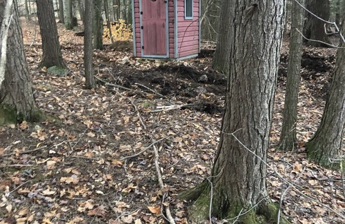 The “ Hemlock cabin”, sitting in the middle of 160 acres of nothing but nature, nestled in a beautiful grove of hemlock trees, with views and nature all around. Explore the trails, take the canoe or kayaks out on the nearby lake. Relax on the hammock, site by the campfire, hike the trails, the property is yours to explore! Minutes from the beautiful historic town of Perth on. Total peace and quiet, come and relax with us.