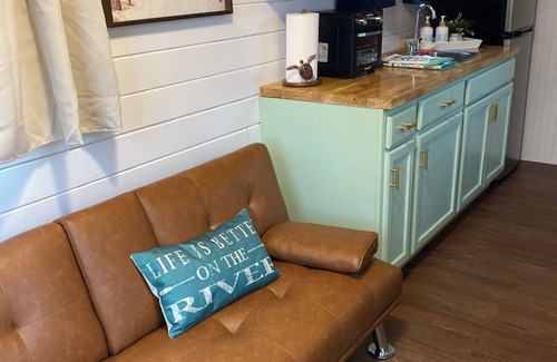 This tiny home is the prefect place to relax and get away. Gated resort with access to a beach and boat ramp on the beautiful Tennessee River, so bring your boat or just relax on the beach. With plenty of amenities for you to enjoy from a grill, fire pit, covered picnic table, and Kayaks! This is the perfect place for you or your family. Come join us at this special tiny home at White Creeks Resort.