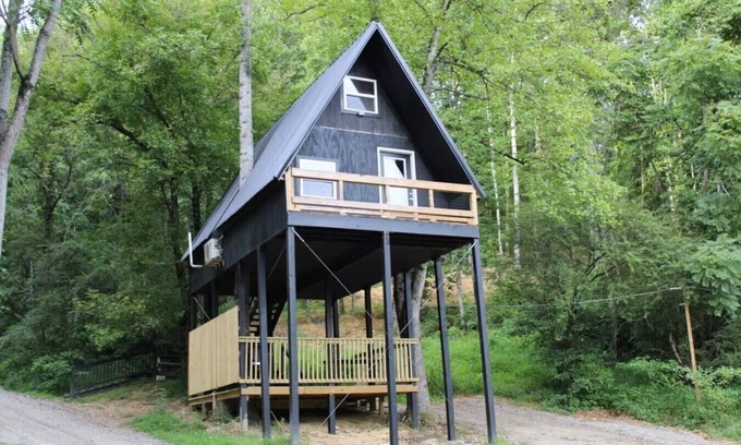 Perched above the forest floor in the mountains of Jonesville, Virginia, this tiny home treehouse offers serene mountain vistas, cozy interiors, and the charm of nature all around. Perfect for romantic getaways or family adventures, the space includes Wi-Fi, a television, a loft with treetop views, a private deck for stargazing, a full kitchen and bath, nearby hiking trails, and all the comforts of home in a beautifully crafted, elevated setting designed for peaceful mountain escapes and rest.