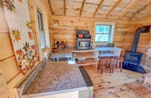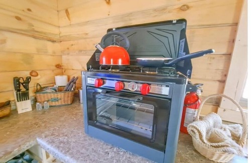 *Full kitchenette with a small propane stove/oven, small insulated "icebox" to keep food cold (bring ice packs and not loose ice) and sink with a water jug and bucket below.
