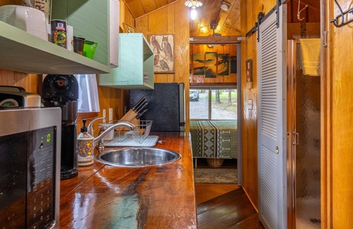 Nestled in a residential neighborhood, our tiny cabin offers a true retreat—preview the surrounding neighborhood on Google Maps! We, your friendly hosts, live on-site next door in the main house, ready to greet you with a warm welcome or respect your privacy with no contact, whichever you prefer. Your stay includes dedicated parking and outdoor space.