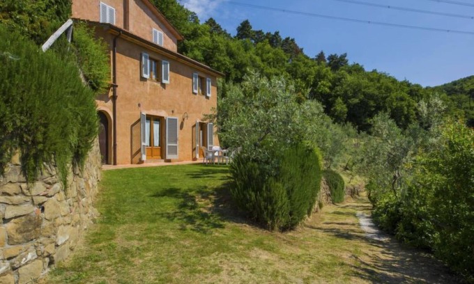 Porciano 8 km from Vinci: Manor house "La Baghera", 350 m a.s.l.. 10 km from the centre of Vinci, 58 km from the centre of Firenze, 68 km from the centre of Pisa, in a quiet, sunny position on top of a hill, in the countryside. For shared use: garden 250 m2 (not fenced), swimming pool (13 x 5 m, depth 90 - 100 cm, seasonal availability: 01.May. - 30.Sep.). Outdoor shower, garden furniture, barbecue. In the house: washing machine (for shared use), heating to be paid on the spot (01.Nov. - 15.Apr.), heating available only from 01.Nov. - 15.Apr.. 1 km long narrow motor access to the house. Parking on the premises. Grocery 1 km, supermarket 3 km, bus stop 1.5 km, sandy beach "Viareggio" 72 km, thermal baths "Montecatini Terme" 30 m. Golf course (18 hole) 17 km, tennis 4 km. Nearby attractions: Pistoia 20 km, Carmignano 25 km, San Miniato 27 km, Montecatini Terme 30 km, Montecarlo 32 km, Lucca 48 km. Please note: the photograph shows a typical example. Additional accommodations can be booked.
