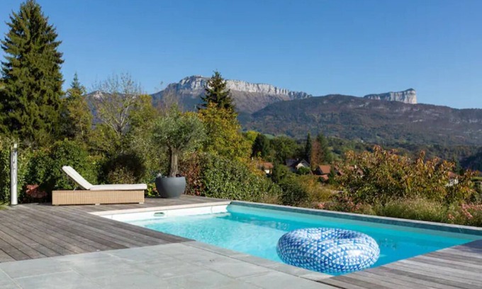 Villa with a pool and a panoramic view of the mountains, just 10 minutes from Annecy and its lake, and 25 minutes from ski resorts like La Clusaz.
