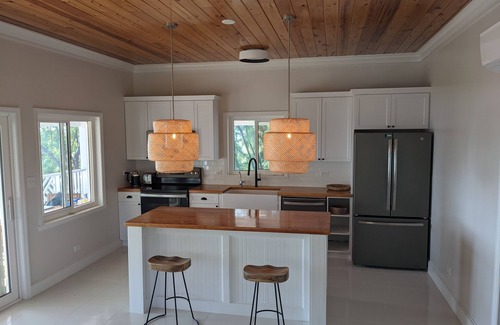 TLSea House is brand new. It was designed with a magnificent wrap around porch for ultimate outdoor living. Enjoy the lapping of turquoise water and the cool Caribbean breeze as your rest in your private island get away.