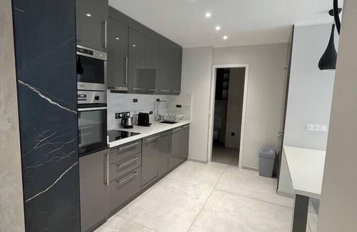 60 m² apartment located at the foot of the city center, 5 minutes from Bonne barracks and Grenoble train station The accommodation is on the 2nd floor with elevator. The accommodation has one bedroom with a double bed. There is also a sofa bed in the living room. The accommodation also has an equipped kitchen and air conditioning. The accommodation has been completely renovated with very high-end services. Le Royal Queen is a T2 apartment with a surface area of 60 m² which is newly renovated. Chambre: - 1 double lit measuring 160 x 200 cm (2 people) - Television 49" - Armoire with penderie - Chevrolet table - Radiator - Chevrolet lamp - Rideau et volet roulant Séjour: - Convertible sofa - 1 TV 55" - Table bass - Table manger for 4 people Cuisine: - Refrigerator - Freezer - Nespresso coffee machine - Grill pain - Couverts, vaisselle, ustensile pour cuisiner - Induction cooktop - Microwave - Poubelle - Bouilloire - Wash vaisselle -Four 2 Salle de bain: - Douche à l'italienne - Meuble rangement - Une vasque - Sèche cheveux - Toilets - Wash Linge You have access to the entire apartment Available from 8:00 a.m. to 12:00 a.m. via Airbnb messaging Bed and bath linen is provided: Bedroom : - Underpad - Mattress cover - Fitted sheet - Duvet cover - Winter or summer duvet depending on the season 220 x 240 cm - Pillow Protectors - 2 Pillows 60 x 60 cm Bathroom : - Small towel and large towel per number of travelers - Bath mat Kitchen : Tea towel An entry pack is provided with coffee capsules, salt, pepper, oil, soap and toilet paper.
