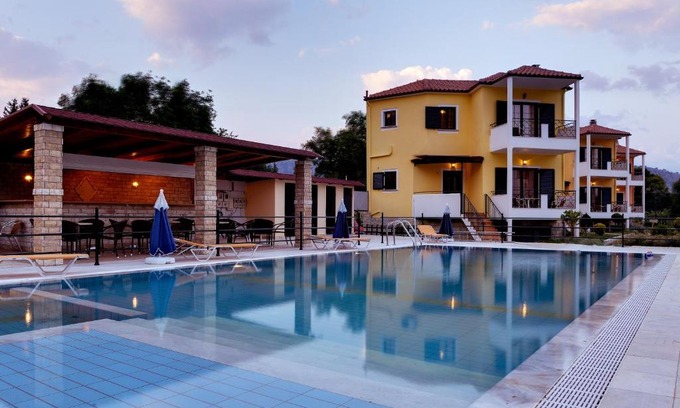 Located in Thesprotiko Village, To Kastri features an outdoor pool and a garden. Opening to a balcony, all apartments offer pool and garden views. Free WiFi is available in all areas. The apartments will provide you with a fireplace, TV and air conditioning. There is a kitchen with cooking equipment and a refrigerator, while each bathroom comes with a shower. At To Kastri you will find a 24-hour front desk, a garden and a bar. Other facilities like a ticket service, a tour desk and a laundry are offered. Activities in the surrounding area include hiking. Ioannis Kapodistrias Airport is located 85 km from the property. Free private parking is possible on site.
