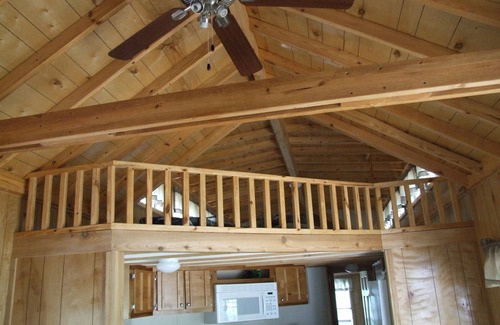 Our Twin Oaks cabin is a wonderful cabin with one queen bedroom and two large sleeping lofts each with queen beds. It has beautiful wood floors and a screened in porch with breakfast nook for enjoying your morning coffee or evening meal. It has all the necessary amenities as well as an outdoor fire pit with firewood provided. We accept pets with a $50 fee for up to two pets per visit plus tax. Additional pet is $25 per pet if approved.