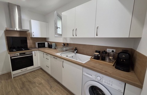 This 1-bedroom, 1-bathroom rental features a living room and concierge services. Bathroom amenities include a hair dryer and towels. The kitchen is equipped with an oven, a refrigerator, and a dishwasher, as well as a coffee maker, a microwave, and cookware. And you won't have to pack extra clothes, because you'll also have access to laundry facilities.