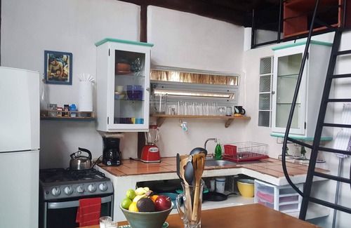 Cool beach vibe with killer ocean and mountain views - this casita has it all! One bedroom with loft accommodates a family of 4, or possibly two couples. At roughly a mile and half to the center of Todos Santos, you are close to the fun, but far enough to escape the noise. We are in the Las Brisas neighborhood which means you get a nice breeze during the heat of the day, and about 3/4 mile to the beach. There is a garden area in the front of the casita which has bananas, palms, pau d'arco trees, and various flowering plants. The neighborhood is of nicer homes, but up a dirt road with a mix of Mexican families and expats alike. PLEASE NOTE: We do have a pet policy and allow dogs on a case by case basis. Sorry no cats or puppies allowed. Thank you for respecting our policies.