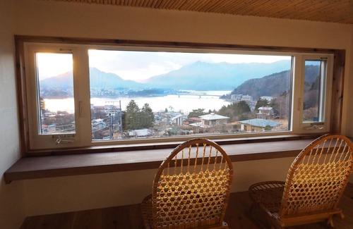 The transom in the room the small window of the door the lighting the kitchen back counter etc / The room consists of 2 Japanesestyle rooms 1 Westernstyle room 1 living dining kitchen and 1 loft It is built at the foot of the mountain about a 5minute walk from the lakeside where you can see Mt The sunset over the lake on a clear day is exceptional At night the night view of the lake and the city is beautiful like a jewel During the summer and winter fireworks festivals it will be a special seat