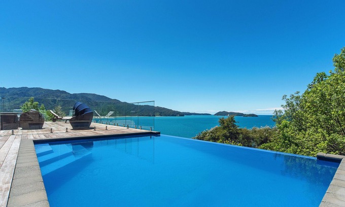 Best-rates for the Ngaio Bay house starts from $824 per night with includes Barbecue/Outdoor Cooking, Parking, TV, Guest Services, Pool, Kitchen, Child Friendly, Air Conditioner, Balcony/Terrace, Security/Safety, Sports/Activities, Wellness Facilities, Internet, Laundry, Bedding/Linens, Fireplace/Heating, Hot Tub with all other amenities. Perfect for Weddings is committed to ensuring every guest experiences a comfortable and extraordinary stay, whether planning a romantic getaway, a honeymoon, a pet-friendly stay, or celebrating with the entire wedding party.