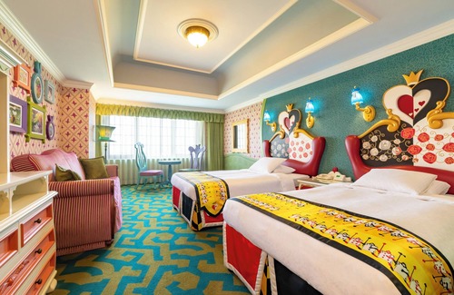 Tokyo Disneyland Hotel offers 706 accommodations with safes and complimentary bottled water. Beds feature down comforters. Flat-screen televisions are featured in guestrooms.