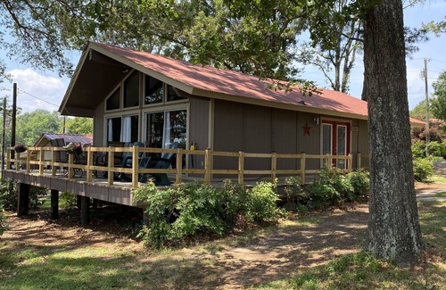 Located on Gibson Point peninsula at 481 Moran Crossing, Milam, Texas, just north of the Pendleton Bridge, this historic mid-century modern cabin named "Crappie House" is perfectly situated near prime bass fishing and the famous “Chicken Coop” crappie fishing areas. Set on a 2-1/2 acre property with 650 feet of lake frontage, the 2-Bedroom 1-bath cabin sleeps 6 (4 adults max) and boasts a "million-dollar view" from the spacious deck that opens to the dining area and great room. Accommodations include a bedroom with a queen bed and a second bedroom with a queen bed and twin bunk beds. Amenities include a charcoal grill, a 52" TV with internet service, free wifi, and a well-appointed kitchen with full-size range, refrigerator-freezer with ice maker, microwave, dishwasher, and toaster oven. The bathroom has a shower stall, toilet, and single sink. There is a washer and dryer. Linens are furnished for kitchen, bed and bath. Added bonuses are the semi-private boat launch on an adjacent cove, a large fire pit with wood, a tree swing, a screened dock house with eating and conversation areas, and a fish-cleaning station on a fishing dock. Crappie House is perfect for serious fishermen, families, and couples looking for a quiet, fairly secluded get-away. Nearby there is a small market and grill that sells fishing supplies, licenses and gasoline. (Louisiana and Texas licenses are accepted on all of Toledo Bend). The town of Hemphill, Texas is a 20-minute car ride away, and has a grocery store, restaurants, ATMs and various shops. Likewise, there are the same offerings across the Pendleton Bridge in Louisiana, about 25 minutes away.