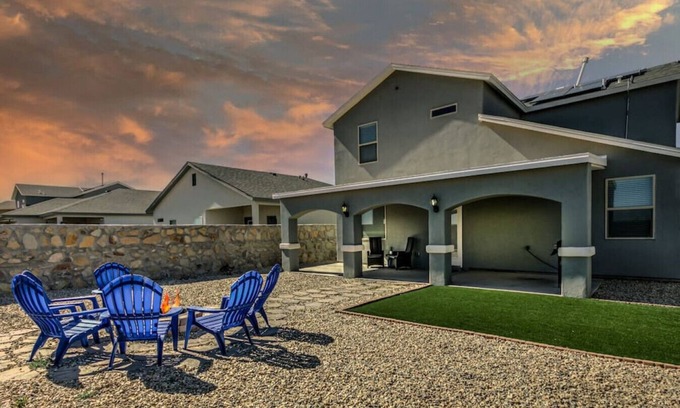 * Beautiful new home in a desirable & safe part of Las Cruces. It has 3.5 baths and 4 bedrooms, including 2 master suites, with comfortable memory foam beds, including a king, 2 queens, a double twin bunk bed with a full on top. Includes grill area, outdoor furniture, and brand new furniture and appliances.