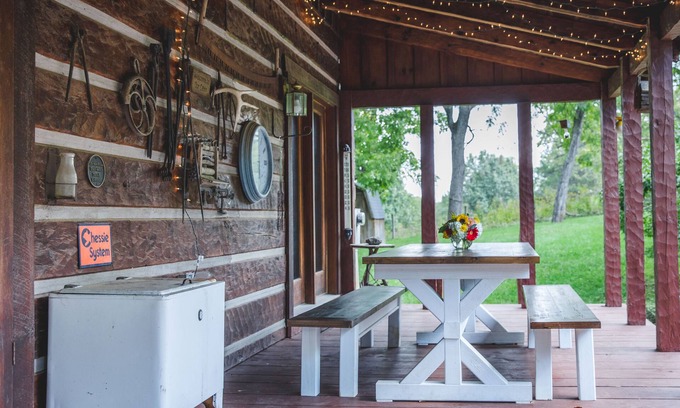 Step back in time at this beautiful log cabin in the country. This special place is furnished with antiques and old woodwork from a previous cabin on the site, yet has all of the amenities of modern day home. Curl up and enjoy an evening of reading, selecting from the nice collection of books, play any of the many board games provided, or just relax in the jacuzzi tub or by the wood burning fireplace. Barbecue on the large back porch with either the gas grill or charcoal grill. Kids will enjoy the Xbox 360 in the loft and outdoor games provided. At the end of the day you can watch the sunset from the front porch swing.