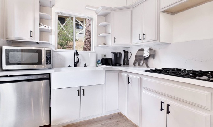 Located in Big Bear Lake, this 4-bedroom cabin lets you experience it all. Fans of nature and the outdoors will love being 8 minutes by car from Eagle Point and 9 minutes from Meadow Park. With the property's convenient onsite parking, you'll be ready to make the quick 4-minute drive to Bear Mountain Golf Course or the 5-minute drive to Bear Mountain Express Lift.