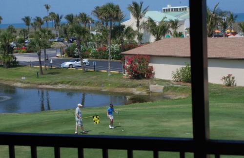 The central A/C gives you the option of cooler air or you can open the windows and with the front screen door you'll have a great cross-breeze to enjoy the ocean air and the sound of the waves crashing. The brand-new washer & dryer, iron and ironing board means you can always look fresh and pressed. Brand-new tropical looking ceiling fans in living room and bedroom provide a great breeze. Two Color TV's and a DVD/VCR provide additional entertainment. A full-sized stereo is also available. The screened Balcony has a table and chairs perfect for alfresco dining. Beach chairs, towels and blanket means you're all set to enjoy a day on the beach, located just across the golf course. The built in desk, can be used for your laptop or the wireless internet service can allow you to search the web and watch the golfers from the balcony.