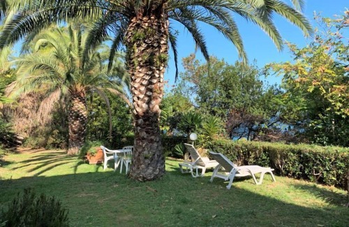 3-room apartment 80 m2, on the ground floor. Comfortable and antique furnishings: living/sleeping room with panoramic window with 1 double sofabed, dining table and TV (flat screen). Exit to the garden. 1 double bedroom. 1 room with 2 beds. Open kitchen (4 hot plates, microwave, freezer). Shower/bidet/WC. Heating (extra). Heating available only from 15.10. to 15.04. Garden 200 m2. Terrace furniture, barbecue (portable), deck chairs. Very beautiful view of the sea. Facilities: washing machine. Please note: maximum 1 pet/ dog allowed. Private entrance. No mandatory extra charges to be paid on-site. IT109030C24ECAO9IF