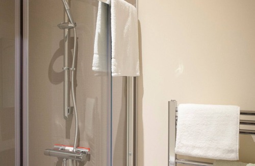 There is a sofa, Smart TV (free to air terrestrial channels are provided and also the facility for you to view your own streaming content), and a drop-down table/workspace and chairs and a comfortable double bed. The bathroom has a shower cubicle, toilet and basin and welcome toiletries (shampoo/shower gel) are provided.