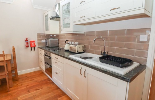 The Goat's Shed is a delightful barn conversion resting in Knockin, Shropshire. Hosting an all-ground-floor layout with two bedrooms, including a double with an en-suite bathroom and a twin with an en-suite shower room, this property can sleep up to four guests. There is also an open-plan living space with a kitchen, a dining area and a sitting area, while outside there is an enclosed private courtyard with seating, and a shared large lawned garden, as well as off-road parking. The Goat's Shed is a perfect place for a rural Shropshire escape.