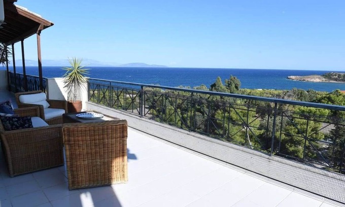 Just a few blocks away from the port, the main square, stores, beaches and ferry-docks, located in a quiet neighborhood with an astounding view to the Aegean sea, the island of Evia and the mountains of Attica, our apartment can offer you a peaceful, relaxed and at the same time an exciting break. Guests can enjoy the unique colors of sunrise and sunset, a romantic atmosphere with beautifully decorated spaces, and a fully equipped, comfortable household for couples or families, hosting up to five visitors. A fresh and convenient apartment, furnished with impeccable taste, combing traditional and contemporary elements can become your ultimate destination at all seasons.