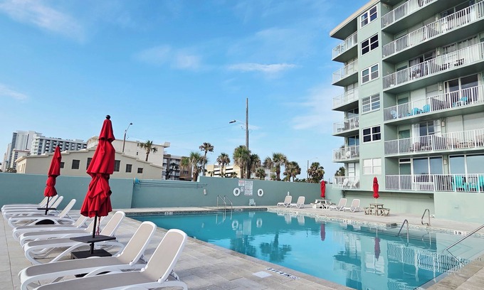 Enjoy a delightful getaway with your loved ones at this stylish and inviting Vrbo rental. This cozy studio on the 6th floor offers a kitchenette and a lovely side ocean view, providing the ideal setting for relaxation. Equipped with a fridge, freezer, microwave, and toaster oven. This studio caters to your culinary needs. Conveniently located just steps away from the ocean and walking distance to so many attractions such as Hard Rock Hotel, Daytona Lagoon, Ocean Walk Shops, and Movies.