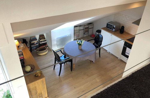 Our top-floor, cross-through apartment offers a bright and spacious retreat right in the heart of Divonne. Ideal for couples, families, or friends, it features two private terraces where you can enjoy breakfast with the sunrise or unwind in the evening with a view over the rooftops.