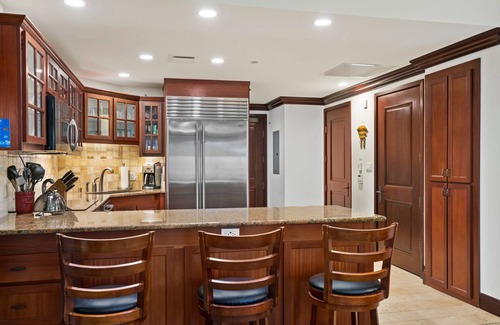 The Waipouli Beach Resort is a new concept in luxury accommodations on the lush island of Kauai, Hawaii and is centrally located within easy reach to any area of the island. Waipouli Beach Penthouse 4th Floor Ocean & Pool View F-404: With the upscale features of a luxury hotel combined with the space and plush interior of this 2 bedroom, 3 bath, 1312 square foot unit that includes an ultra gourmet top of the line kitchen with a Sub-Zero refrigerator, Wolf glass cook top, Wolf oven, GE profile microwave, Bosch 100% silent dishwasher, granite counter top and African Mahogany cabinets plus three full bathrooms with Peruvian Travertine tile surrounds, 2 soaking tubs & 2 showers, and fine artwork.