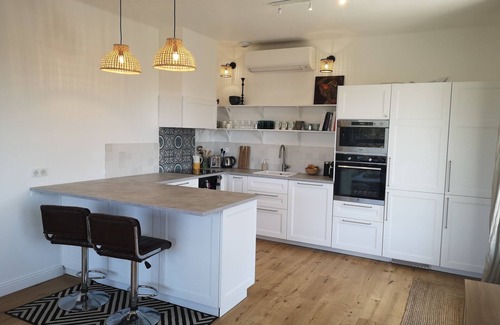 Stay in this large, bright 3-room apartment of 80 m2 (860 sq feet)fully renovated, located in a quiet and green area, close to shops and beaches and just outside a cycle path. The perfect spot for a holiday with family or friends, up to 6 people!