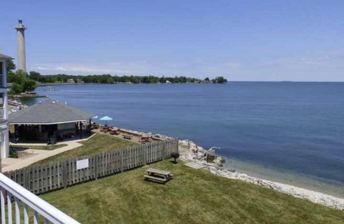 Enjoy a spacious 1BR waterfront condo overlooking Lake Erie and Perry’s monument. Walking distance to all the fun of downtown Put-in-Bay yet located on a quiet dead end street so you can relax when you want to. This spacious top floor waterfront condo has amazing views, grounds, and lake access. Have your coffee on your private balcony overlooking the island's most picturesque sunrises and Perry’s Monument. Enjoy unobstructed stargazing from the top floor balcony! Enjoy backyard bbq on the lake or simply relax and listen to the waves. Located close to downtown but far enough away for you to relax. Our place is ideal for couples or small families. This is a quiet 12-unit building with some year-round residents so please no parties!