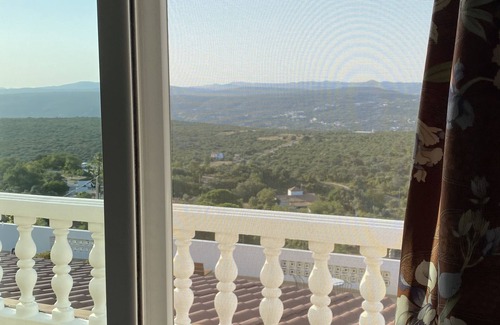 Appartement met zeer groot ver uitzicht in typische Algarve woning, ruime woonkamer met TV, ruime keuken, goed ingerichte en zeer ruime slaapkamer, extra bed mogelijk bij te plaatsen, kinderbed aanwezig en mooie badkamer met dubbele douche, wastafel en toilet, tweede slaapkamer op aanvraag met kleine badkamer. op tussenverdieping met terras De locatie is een oase van rust, huurders hebben het zwembad volledig tot hun beschikking, buiten de eigenaren die er wonen is er slechts 1 appartement dat verhuurd wordt, waardoor het privé aspect zeer groot is. Tijdelijk bezoek van onze huurders kan, op afspraak en extra overnachting hiervoor is mogelijk tegen betaling van een extra kamer.