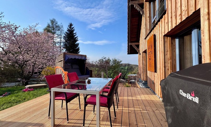 - TOP moderne FeWo - Alpakahof zum Himmelreich, traumhafte Lage, Terrasse mit Weitblick, kostenfreier Parkplatz, Nähe Kurklinik, optional Sauna