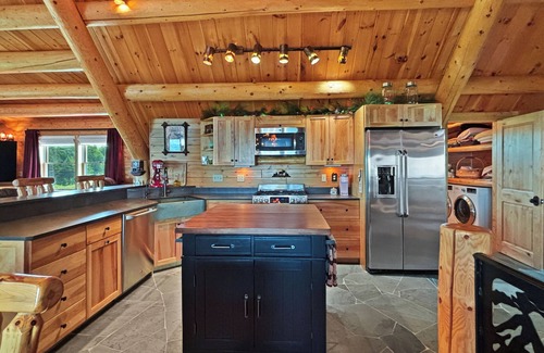 You'll find a fully equipped kitchen with modern appliances, slate countertops, and all the essentials for preparing gourmet meals. The home features a master and guest bedroom, each thoughtfully furnished for rest and relaxation. Wake up in the master suite and step directly onto the expansive private deck — enjoy your exclusive vantage point of the lake as you enjoy your morning coffee and watch the sunrise! The two full bathrooms give added convenience with a full-sized slate shower and porcelain bath that are perfect after those full days exploring the majestic Moosehead Lake Region!