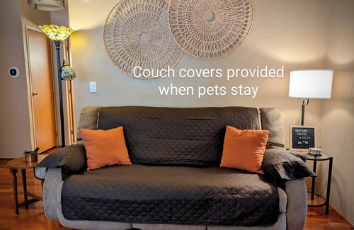 14. Pet Linens: Pets are not allowed on our provided linens. Please bring your own if your pet will be on the bed. Excess pet hair on our linens will incur a $50 fee. Pet covers for both chairs and the couch are provided.
