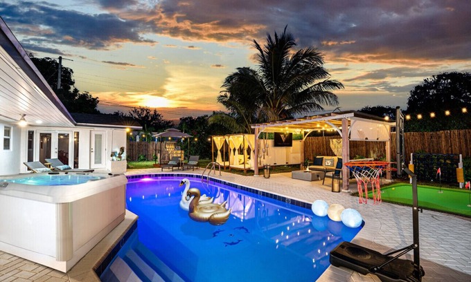 Top Villa w/Game Room Hot Tub & Htd Pool Near Beach is located in Pembroke Pines. Top Villa w/Game Room Hot Tub & Htd Pool Near Beach provides accommodation, featuring Air Conditioner, Security/Safety, Sports/Activities, among other amenities. This Villa features Air Conditioner, Security/Safety, Sports/Activities, to make your stay a comfortable one.