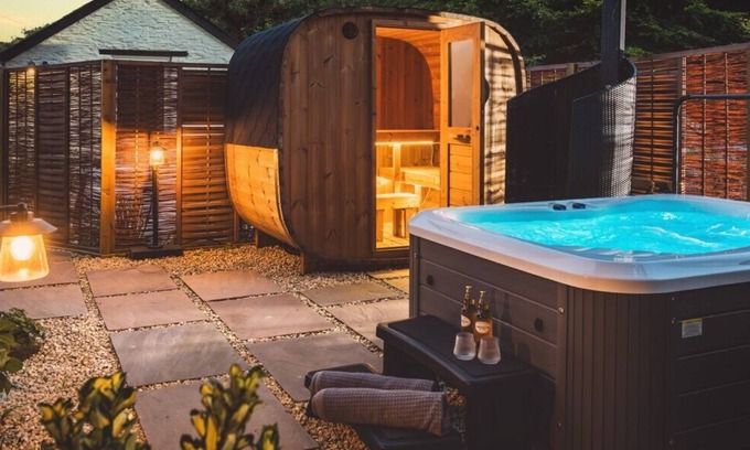 A large private seating area, with garden and outdoor lighting, enables guests to relax and enjoy this secluded sun trap. The Hillside Spa Garden offers a round cubed sauna, outdoor cold-water shower and an ready to go hot tub.