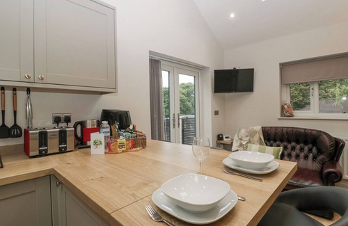 Torino Lodge, a single-storey house, consists of an open-plan living space including a kitchen with electric oven and gas hob, microwave, fridge with ice box, and air fryer, a dining area, and a sitting area with TV. The bedrooms consist of two doubles, one with an en-suite walk-in shower. There is a shower room with walk-in shower, basin, and WC. Outside, there is a front patio with furniture, a patio terrace with furniture, plus off-road parking for one car and another parking space available by prior enquiry only. Two well-behaved dogs welcome. Sorry, no smoking. Shop and pub 0.2 miles, canal 1.2 miles. WiFi, fuel, power, bed linen and towels are all included in the price. Stay at Torino Lodge for your next picture-perfect holiday. Note: Ramp down to property. Please note: This property has a 3-night minimum stay, until October through til March. Please note: This property has a £20 per pet, per holiday supplementary charge