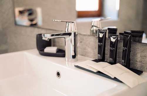While you're here, you can enjoy all the comforts of home and more, including free WiFi and a flat-screen TV, as well as a bidet and an espresso maker. Other amenities include designer toiletries, towels, bathrobes, and slippers.