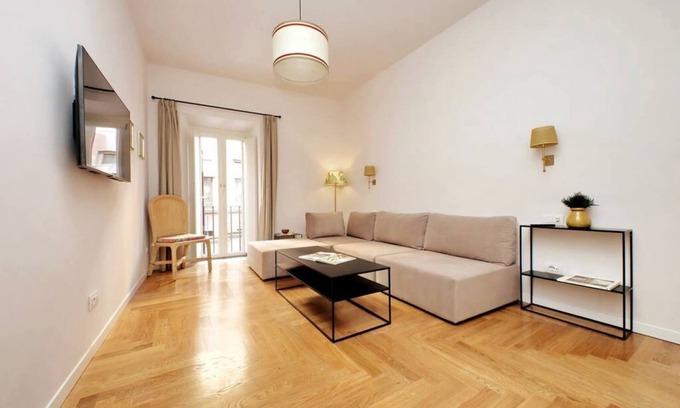 It measures 130 square meters and comprises an entrance hall, a living room, a fully equipped kitchen, a dining room, three bedrooms with king-size beds (70 in x 79 in), and one bedroom with a queen-size bed (63 in × 79 in). Each bedroom has its own bathroom with a shower. The apartment has free WiFi, a smart TV, air conditioning throughout, linens and towels, and a washing machine and dryer.