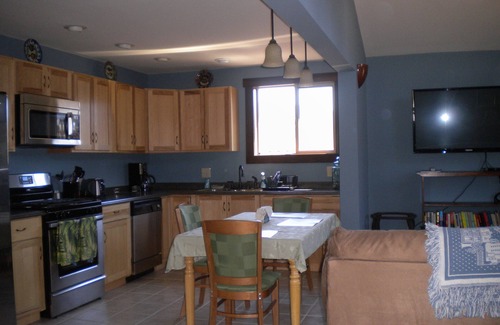Tortilla Flats is located on the Yellowstone River, in the town of Gardiner. The north entrance to Yellowstone National Park. It is a newly constructed, air conditioned, modern 1200 sq ft vacation rental. Located on a second story. Large bed room with king size bed. Attached balcony, overlooking the river. One bathroom with double vanity, shower/jacuzzi tub. Open kitchen/living room. The kitchen has new appliances. Side by side refrigerator with water/ice dispenser, dish washer, double sink with garbage disposal, microwave oven over gas range, toaster, coffee maker, all utensils, pots, pans, ect. Dinning table. Living room with couch and love seat, 52' flat screen tv with premium cable channels. . 2 twin beds in alcove.Large out door patio/deck off of livingroom. Dinning table, gas BBQ grill, seating. We are centrally located in Gardiner, on a dead end street, behind the school with play ground Walking distance to all amenities. Restaurants, bars, grocery store, shops and the park. Great views of the park and river from our decks. Fall asleep to the sound of the river.