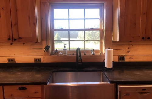 We want your stay at H’Owl at the Moon to be as relaxing as possible. That starts with eliminating things to pack. The cabin is thoroughly stocked with bath towels, hand towels, wash cloths, dish soap, body soap, shampoo, conditioner, hair dryers, toilet paper, paper towels, first aid kit, dishwasher detergent, etc. Beds always have freshly laundered sheets, and there are varieties of pillows and blankets to satisfy various preferences stored in the closets. H’Owl at the Moon Cabin is a rare blend of rural tranquility with pampered luxury. It offers all the privacy and solitude of a mountain retreat without giving up any of the comforts of home. We invite you to come and experience its magic.