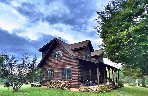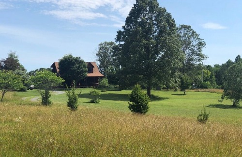 The cabin at H’Owl at the Moon is an authentic log home on nearly 70 acres in beautiful Albemarle County, Virginia. A year-round creek borders the entire eastern side of the property with many small pools and waterfalls. Mowed footpaths cross the fields and provide easy access to walking trails in the forest and a world of exploration. A large freshwater spring-fed pond offers 24 hour entertainment whether it's sunning and swimming in it yourself or just watching and listening to the bullfrogs do it.