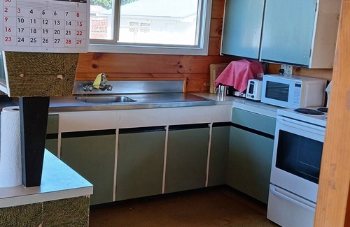 A well used/loved bach in a fantastic location. Spend leisurely days on the spacious deck then step straight from the lawn to the beach to cool off with a swim. This Bach is a kiwi classic/original.