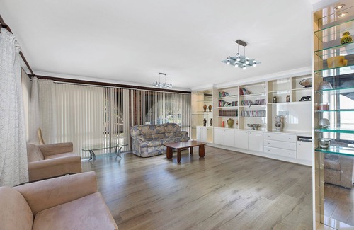 An executive style residence featuring 4 large bedrooms plus 5th bedroom/study, multiple living zones, a large master suite with ensuite including spa and remote double garage.