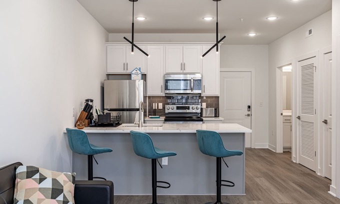 We are a group of nine 1-bedroom apartments inside a newly built thirty 1-bedroom apartment building (August, 2024). The nine units are designated as tourist homes licensed by the city of Richmond. It's off I-64 exit 193a, in a quiet and upcoming new development residential area. A short walk to the newly built Bon Secour Hospital Complex, it is less than 2 miles drive to the Richmond downtown area, home to many museums, events and conferences, and of course, popular restaurants and bars.