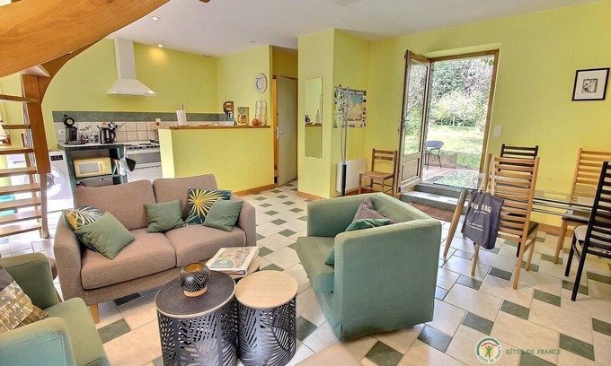 Your vacation rental includes on the ground floor: living room with kitchen area and lounge area, a separate toilet. Floor: 1 mezzanine with 2 90x190 beds and a baby area with wooden cot and storage, 1 bedroom with 1 140x190 bed, bathroom with bathtub + shower curtain and toilet. Private wooden terrace overlooking the park. Courtyard and land of 15,000 m² shared with other accommodation. Gite adjoining the owner's home and close to a farm, located in the small hamlet of Kernanouet with 4 accommodations, including the owner's home and 2 other gîtes (22G321308 and 22G321309). You will appreciate the 1.5 ha exteriors, with shared courtyard, lawn and parking for all accommodations. Thanks to its private lawn area you will enjoy the garden furniture when returning from your visits. Visiting Quintin, just 9 km away, is like taking a trip back in time, tasting castle life during a candlelit dinner. The Château de Quintin also appeals to the imagination, transforming into a life-size cluedo during murder parties. Intense, we tell you! Around Quintin, two exceptional sites with preserved nature: the Landes de Lanfains and the Chaos du Gouët. Let time flow.